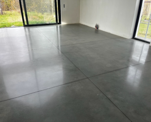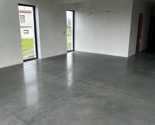 Nowo powstały budynek mieszkalny wykonany od podstaw w technologii polerowanego betonu. Klient od początku był zdecydowany na posadzkę betonową, która będzie jednolita, łatwa w utrzymaniu w czystości i estetyczna. Moda polerowanego betonu pozwala dziś na wykonanie tego rodzaju posadzek z należytą starannością. Polerowany beton wciąż poszerza swoje zasięgi o nowe posadzki i zyskuje coraz więcej zwolenników.