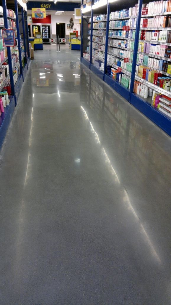 Kolejna renowacja posadzki w technologii Concre-tex w jednym z szesnastu marketów w Polsce. Renowację posadzki betonowej wykonaliśmy na łącznej powierzchni 100 tys. metrów kwadratowych. Z wprawą oraz starannością przekształciliśmy szary beton w estetycznie prezentujące się rozwiązanie.